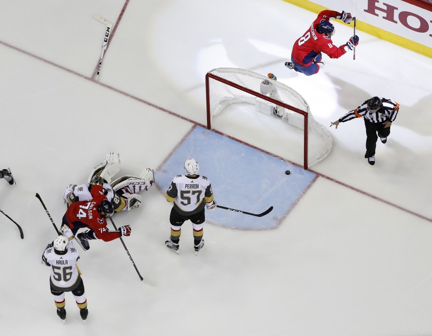 Spēles rezultāts gan tika atklāts jau otrā perioda otrajā minūtē. ''Capitals'' sagrieza pamatīgu karuseli viesu aizsardzības zonā, vienā uzbrukumā Flerī atvairīja veselus trīs metienus, tomēr pēc Džona Karlsona metiena pirmais pie atlēkušās ripas bija Aleksandrs Ovečkins, panākot 1:0 Vašingtonas labā. Vegasai nedaudz vēlāk bija teicama iespēja rezultātu izlīdzināt, kad savā aizsardzības zonā rupji kļūdījās Orpikss, tomēr pretī tukšiem vārtiem pa ripu netrāpīja Rīvzs.