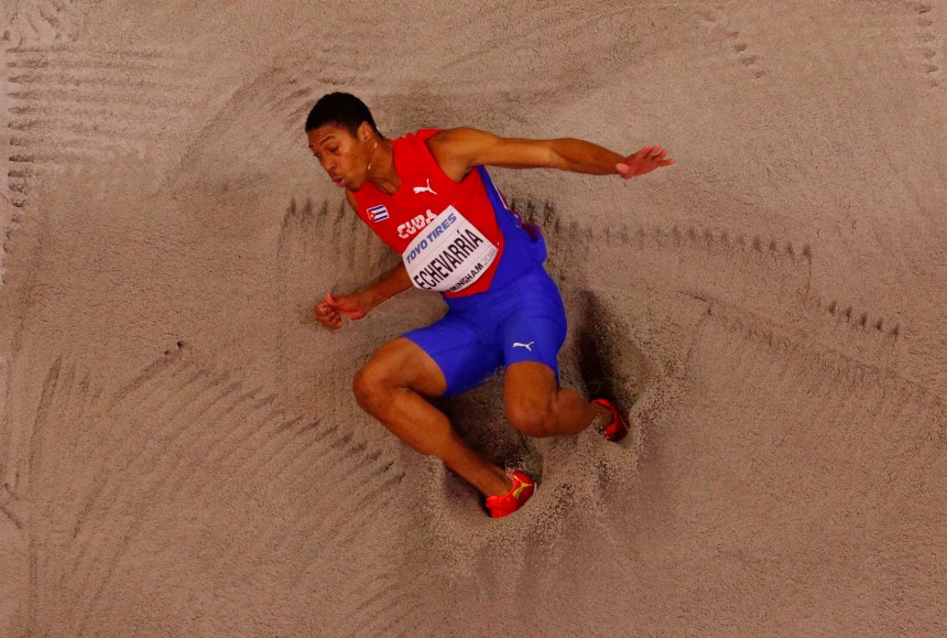 Pēdējos lēcienos visi seši no astoņiem dalībniekiem, kuriem rezultāti tika ieskaitīti, pārsniedza astoņu metru robežu, bet Ečevarija parūpējās par sensāciju. Šogad par pasaules čempionu telpās kļuvušais kubietis teju, teju izlēca no bedres, sasniedzot 8,83 metrus, kas ir labākais rezultāts pasaulē pēdējo 23 gadu laikā.