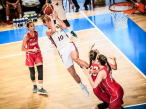 Latvijas U18 meiteņu basketbola izlase pirmdien, 6. augustā, Eiropas čempionāta spēlē Udinē uzvarēja Ungāriju ar 71:59 un izcīnīja pirmo vietu B grupā. Astotdaļfinālā 8. augustā latvietes tiksies ar Zviedriju.