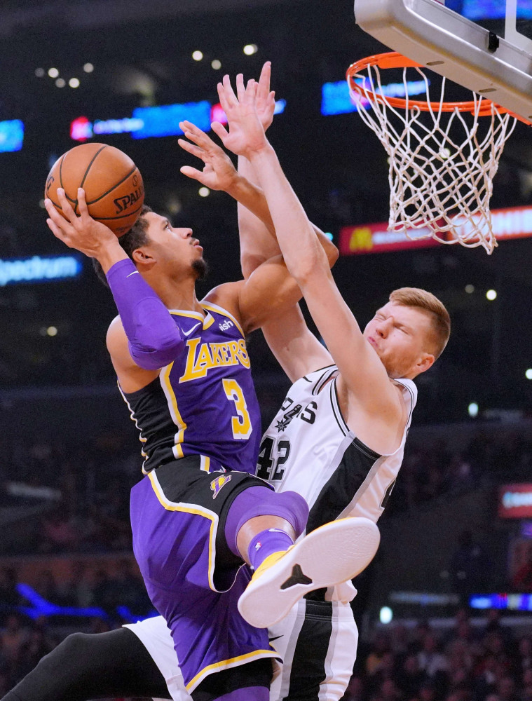 Džeimss spēli pabeidza ar 42 punktiem un sešām piespēlēm, nospēlējot 40 minūtes. Kuzma pievienoja 22 punktus, bet 14 punkti un deviņas piespēles Lonzo Bola rēķinā. „Lakers” trāpīja divreiz vairāk tālmetienu nekā „Spurs” (14 pret septiņiem). Sanantonio sastāvā 32 punkti Derouzenam, kamēr Rūdijs Gejs sameta 31 punktu, aizvadot savu rezultatīvāko maču „Spurs” krāsās. 21 punktu pievienoja Lamarkuss Oldridžs, bet, neskaitot Bertānu, nevienam citam nebija vairāk par sešiem punktiem.