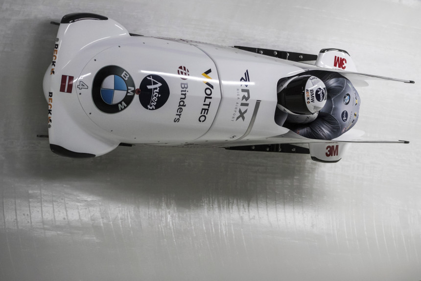 Tikmēr uzreiz aiz pirmā trijnieka ir britu ekipāža ar Bredu Holu priekšgalā, kamēr viņam seko Ķibermanis kopā ar stūmēju Matīsu Mikni. Latvieši no pirmās vietas atpaliek 0,43 sekundes, kamēr no pirmā trijnieka - 0,14 sekundes.