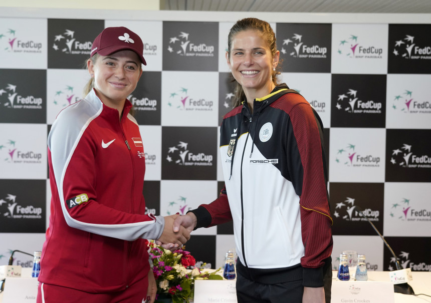 Latvijas un Vācijas sieviešu tenisa izlašu Federāciju kausa divcīņu ievadīs Aļonas Ostapenko un Andreas Petkovičas duelis, bet otrajā mačā spēkosies Diāna Marcinkēviča un Jūlija Gērgesa.