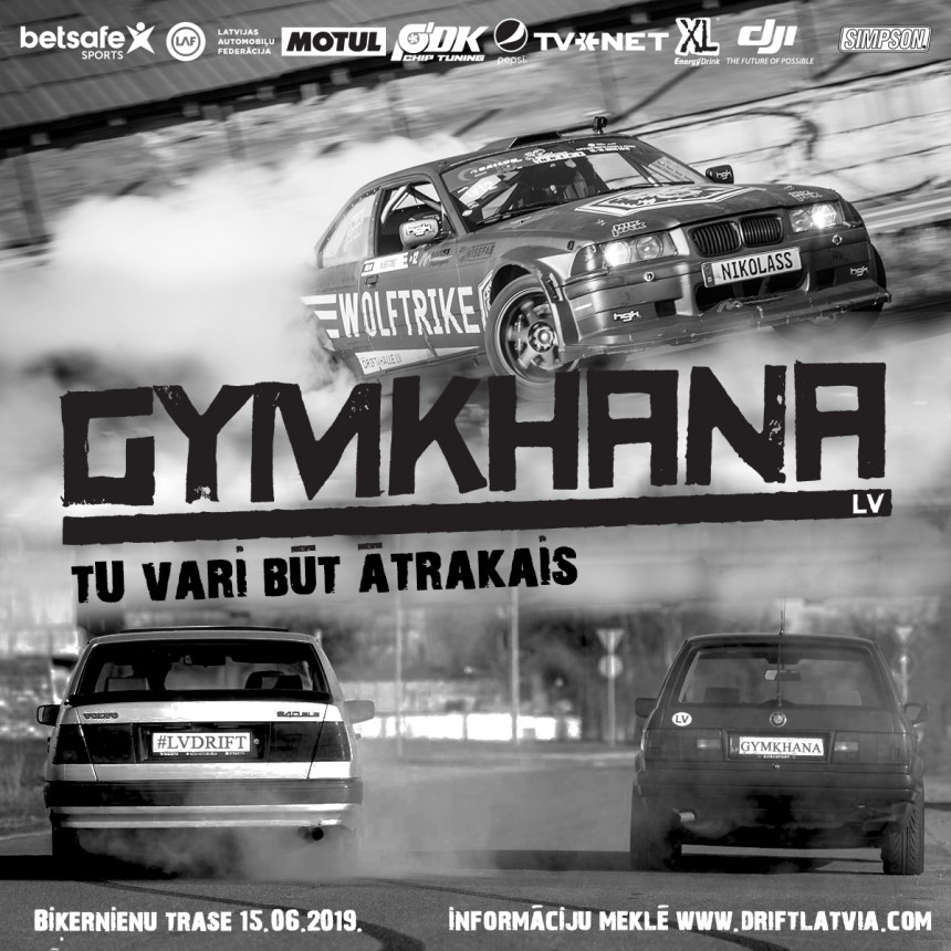 Šajās sacensībās tiks aizvadīts Gymkhana.lv pirmais pilotposms. Gymkhana jeb auto slaloms ir viens no jaunākajiem autosporta virzieniem. Sacensības notiek slēgtās trasēs vai īpaši pielāgotos un ierīkotos laukumos. Braucējam ir jāveic tiesnešu izlikta trases konfigurācija saskaņā ar shēmu, noteiktā secībā. Trases shēmas tiek publiskotas tikai sacensību dienā un iepazīties ar trasi braucējiem ir tiesības tikai izstaigājot ar kājām. Braukšanā tiek izmantoti tādi elementi kā čūska, vārti, 180, 360 vai vairāk grādu pagriezieni, braukšana atpakaļgaitā, stāvbremzes izmantošana, mucu apbraukšana u.c. Uzvarētājs Gymkhanā ir tas sacensību dalībnieks, kas distanci ir veicis pareizi, visātrāk un precīzāk, nenogāžot / neaizskarot trasi apzīmējošos konusus un citus trases norobežojošos šķēršļus. Organizatori jau ir sagatavojuši trases konfigurāciju 15. jūnijam un tā būs ļoti interesanta. Gymkhana notiks paralēli drifta sacensībām Spīdveja stadionā.