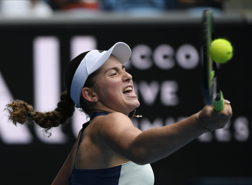 Latvijas tenisiste šajā mačā pieļāva deviņas dubultkļūdas, turklāt otrajā setā izlaida vadību 5-2, zaudējot piecus geimus pēc kārtas, no kuriem divi bija pie savas serves.