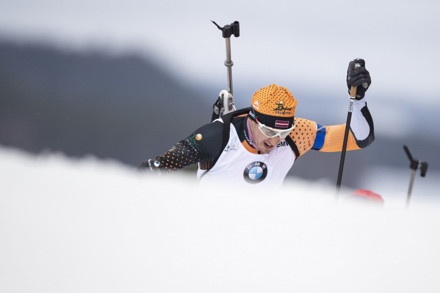 Tikmēr šosezon pirmās sacensības aizvadījušais Edgars Mise nevienā no šautuvēm kļūdas nepieļāva un finišēja sev rekordaugstajā 72.pozīcijā. Viņš norvēģim zaudēja divas minūtes un 46,4 sekundes.