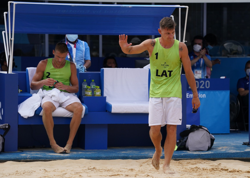 Jau ziņots, ka pirmajā spēlē Latvijas sportisti ar rezultātu 0-2 (19:21, 16:21) cieta neveiksmi pret amerikāņiem Džeiku Gibu un Teileru Krebu, kuri saņēmuši ceturto numuru. Latvijas duets ir vienīgais A grupā, kas nav ticis pie uzvarām.