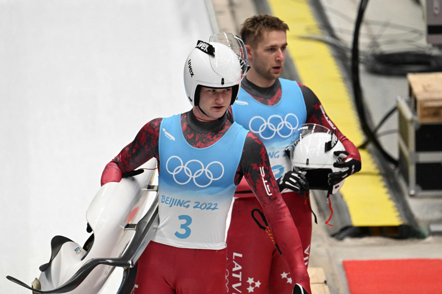 Pēc pirmā brauciena Pekinas olimpiskajās spēlēs Latvijas kamaniņu sporta ekipāža Mārtiņš Bots/Roberts Plūme ieņem piekto vietu un Andris Šics/Juris Šics ir sestajā vietā.