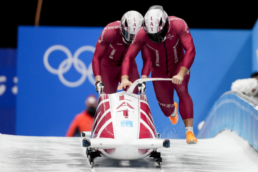 Pekinas ziemas olimpisko spēļu pirmajā braucienā divnieku sacensībās Latvijas bobslejisti Oskars Ķibermanis un Matīss Miknis ieņem desmito vietu, Emīls Cipulis un Edgars Nemme ir 18.vietā, bet līderi ir Vācijas ekipāžas.