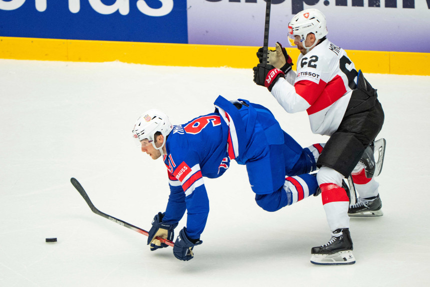 B grupas mačā Herningā Šveice ar 3:0 (2:0, 0:0, 1:0) pieveica ASV.