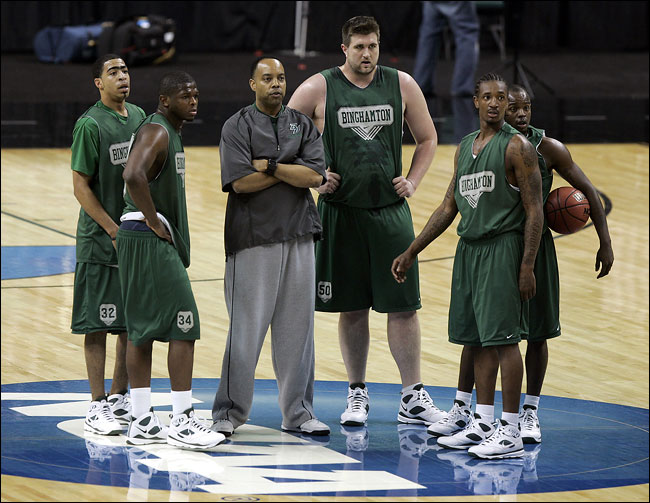 Tam sekoja pāreja uz koledžu basketbolu, kurā gan Montgomerijam ne tuvu tik labi negāja - četrās NCAA pavadītajās sezonās Binghemptonas "Bearcats" sastāvā centram vidēji laukumā pavadīja 5,5 minūtes, guva vienu punktu, izcīnīja 1,2 bumbas un pārkāpa noteikumus 1,3 reizes. Tāpat jau tā necilo statistiku Montgomerijs pasliktināja vēl vairāk ar soda metienu procentu - trāpīti deviņi no 29 jeb 31 procents.