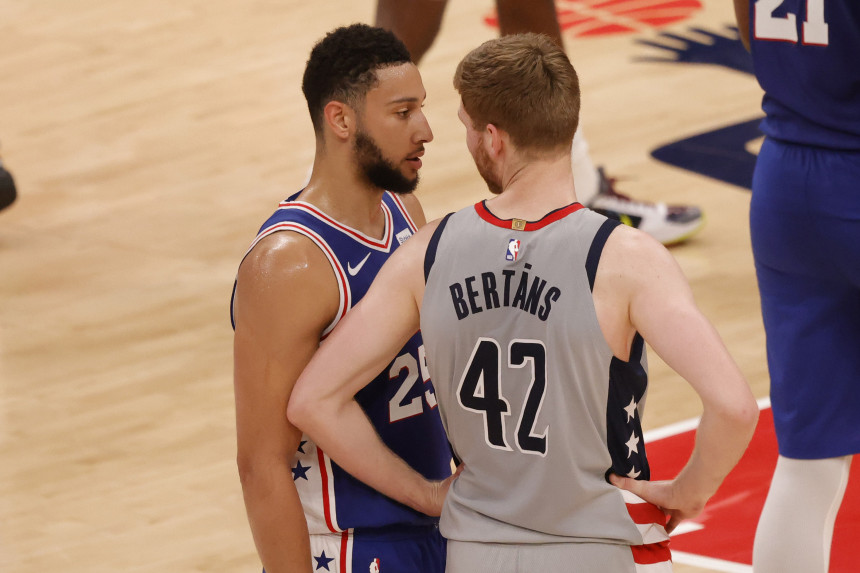 Bertāna pārstāvētā Vašingtonas "Wizards" Austrumu konferences ceturtdaļfināla spēlē mājās ar rezultātu 122:114 (28:31, 32:30, 32:19, 30:34) pārspēja Filadelfijas "76ers", izglābjoties no sezonas beigām.