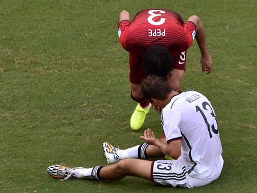 Ar trim zibens spērieniem par maz? Lūdzu – lūk, jums arī ceturtais! 37. minūtē Pepe, esot ar bumbu, noglaudīja sava sedzēja Millera seju, un pēc tam naturalizētajam brazīlietim neizturēja nervi. Acīmredzot uzskatīdams, ka Millers simulē, viņš guļošajam vācietim nedaudz iebakstīja ar galvu, un Pepes reputācija nopelnīja viņam sarkano kartīti. Un puslaika kompensācijas laikā Vācija kliedēja pēdējās šaubas par uzvarētāju. Brunu Alvešs neizdevās izsist bumbu pēc Krosa centrējuma, un Millers no soda laukuma iekšienes guva savus otros vārtus (3:0).