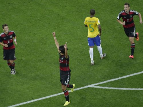 Pasaules kausa pirmajā pusfinālā Vācijas izlase sagādāja pamatīgu apkaunojumu mājiniecei Brazīlijai. Laika posmā no 23. līdz 29. minūtei vācieši guva četrus vārtus, puslaiku pabeidza ar 5:0, bet mačs noslēdzās ar pārliecinošāko uzvaru Pasaules kausu pusfinālu vēsturē - 7:1. Pa diviem vārtiem Tonijam Krosam un Andrē Širlem, bet Brazīlijā šoks.