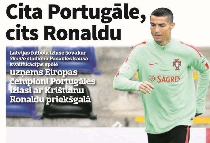 Latvijas futbola izlase šovakar Skonto stadionā Pasaules kausa kvalifikācijas spēlē uzņems Eiropas čempioni Portugāles izlasi ar Krištianu Ronaldu priekšgalā.