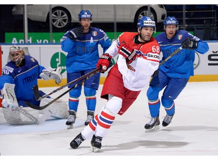 Pasaules hokeja čempionātā Minskā šodien Čehijas izlase pārspēja itāļus (2:0) un izcīnīja savu pirmo uzvaru pamatlaikā. Līdz ar to čehi pakāpjas uz ceturto vietu A grupā.