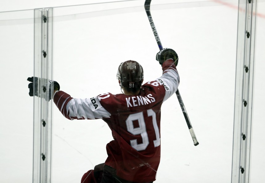Spēles starp Latvijas un Vācijas hokeja valstvienībām otrā perioda beigās, Ronalds Ķēniņš raidīja ripu pilnīgi tukšos vāciešu vārtos un izvirza Latviju vadībā, 1-0.