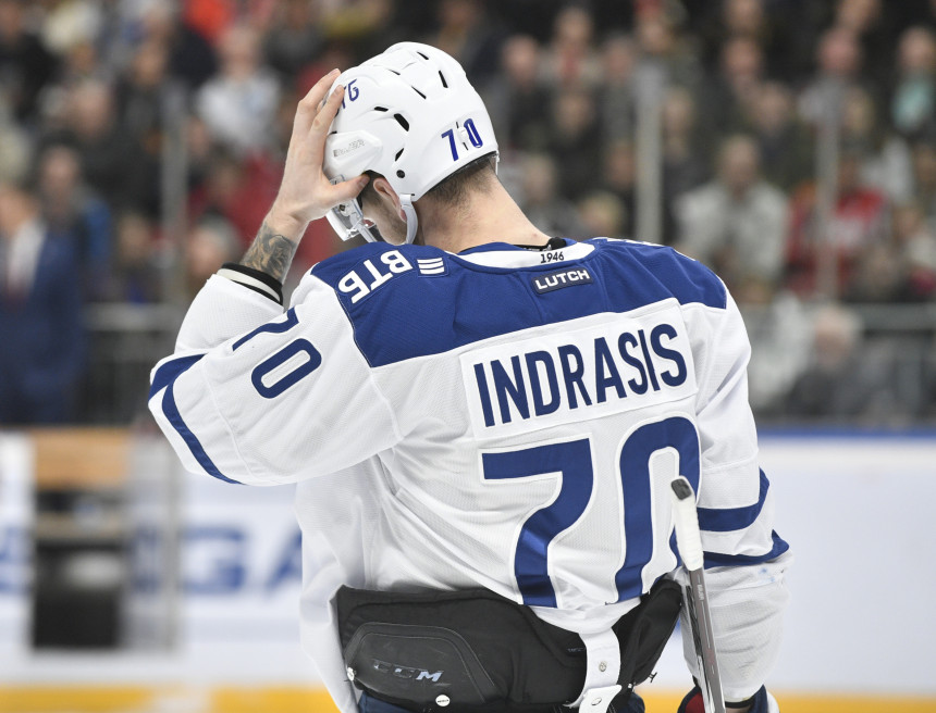 Indrašis šajā duelī uz ledus pavadīja 16 minūtes un 15 sekundes, kuru laikā piecas reizes meta pa vārtiem, kas bija lielākais rādītājs komandā.
