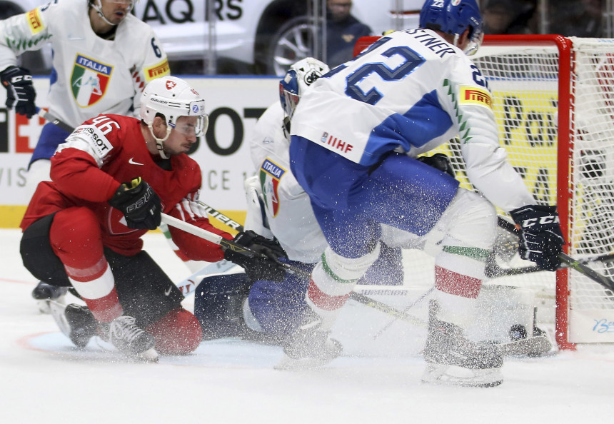 Viena no Latvijas hokeja izlases pretiniecēm Šveice sestdien Slovākijā notiekošo pasaules čempionātu iesāka ar graujošu uzvaru, jo Bratislavā ar 9:0 (4:0, 2:0, 3:0) tika sagrauta Itālija, kamēr citā mačā Dānija guva pēcspēles metienos.
