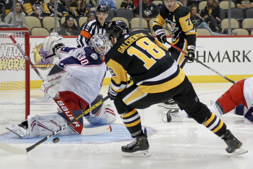 Latvijas izlases centra uzbrucējs Teodors Bļugers svētdien Nacionālās hokeja līgas (NHL) pārbaudes spēlē asistēja savas komandas Pitsburgas "Penguins" pirmajā vārtu guvumā, kamēr citā mačā Elvis Merzļikins pirmo reizi Ziemeļamerikas laukumos savos vārtos ielaida piecas ripas.
