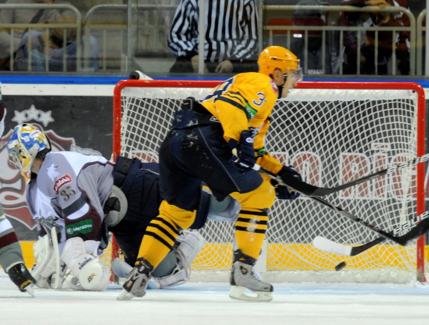 Pirmo momentu ''dinamieši'' izveidoja tikai skaitliskajā vairākumā, kad Konstantīnu Baruļinu ar spēcīgu metienu centās pārspēt ''Dinamo'' šīsdienas kapteinis Ģirts Ankipāns. Nesekmīgi. Tomēr rīdzinieki šo vairākumu realizēja. Broks Troters ar plašu piespēli atrada nepiesegto Marku Hartiganu, kuram atlika ripu ieraidīt jau tukšā vārtu stūrī – 1:1. Arī turpinājumā komandas vairāk domāja par vārtu guvumiem, ne savu vārtu drošību, taču rezultāts nemainījās. Rezumējot pirmās 20 minūtes, rīdzinieku rindās redzamākais bija Hartigans – gan pozitīvā, gan negatīvā zīmē, proti, vārtu guvums un vairākas labas darbības pie pretinieku vārtiem, kā arī trīs nevajadzīgi noraidījumi.
