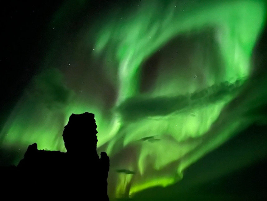 Islandē bija iespējams ieraudzīt ļoti košu ziemeļblāzmu.