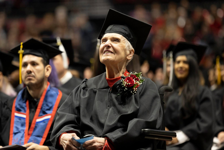 Kā ziņo universitāte, tad Džoisa ir vecākā persona, kas jebkad šo mācību iestādi ir absolvējusi.