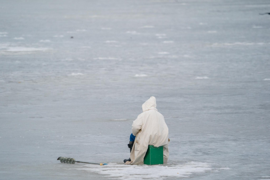 Stāvot uz dambja, var saskatīt makšķerēšanas piederumu kasti, kas, visticamāk, piederējusi aizgājušajam makšķerniekam. Turpat arī ielūzis ledus un vairākas iestaigātas glābēju sliedes.