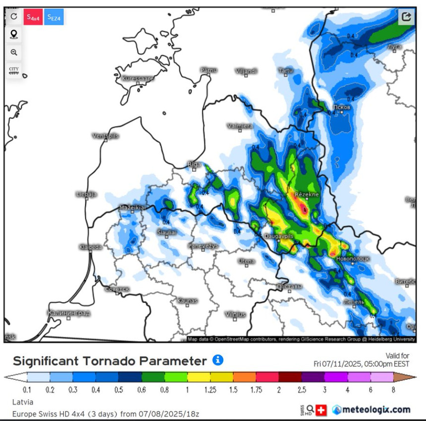 Pašreiz izskatās, ka 11. jūlijā Latvijas austrumos būs ļoti dinamiski atmosfēras apstākļi. Modeļi liecina par zināmu līdzību ar 2023. gada 7. augusta gadījumu, kas izraisīja lielgraudu krusu, kas kopā ar spēcīgu vētru nodarīja ievērojamus postījumus. Jā, tas vēl ir 2 dienas uz… pic.twitter.com/GbQEXLtuzl