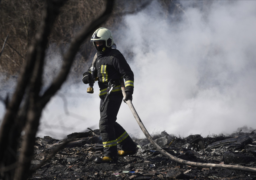 Sprādzieni, kas atskan no liesmojošā angāra, piepildījuši Rumbulas industriālo rajonu.