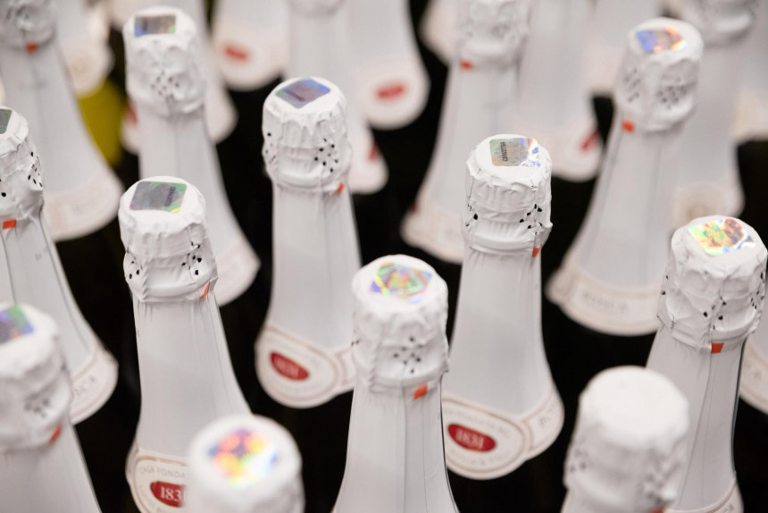 Līdzās stiprajam alkoholam no Ukrainas, kā stalti zaldāti izvietots degvīns “Moskovskaja”. Kastes ar dzirkstošo vīnu “Sovetskoje Šampanskoje” jeb “Padomjlaiku Šampanieti” atrodam citā veikalā. Uz etiķetes skaidri un gaiši rakstīts - ražots Rīgā.