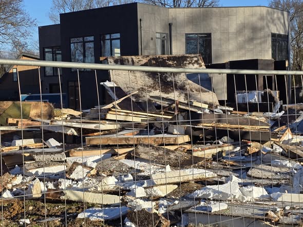 Tagad paveras dīvaina aina - viena no jaubūvēm tiek nojaukta. Cik saprotams no fotogrāfijām, tad māja ir būvēta no putuplasta un finiera, kam uzlikta ārējā apdare.