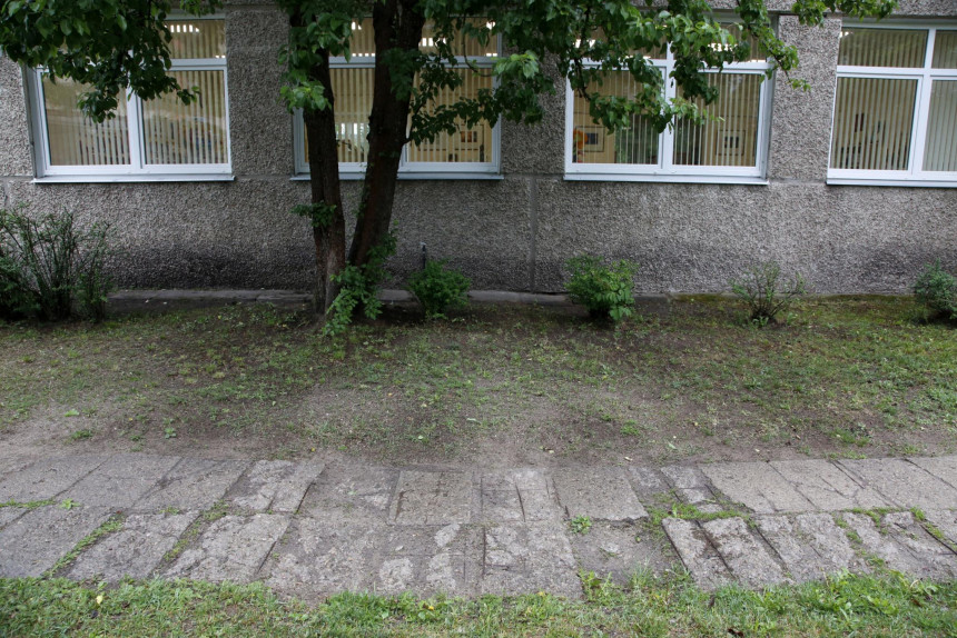 Klāt pievienotajā foto redzams, ka reklāmas stends novietots uz ietves, savukārt atjaunotais ietves segums drīzāk atgādina nekvalitatīvu asfalta ielāpu.