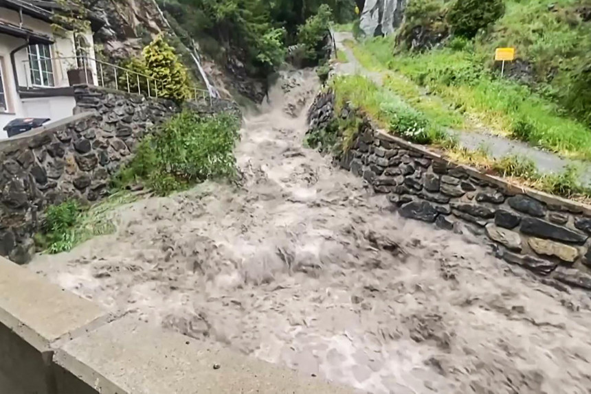 Jau iepriekš ziņots, ka Šveices kalnu kūrortos pēdējās nedēļas laikā bijušas pamatīgas lietavas, kas izraisījušas plūdus un zemes nogruvumus, kā arī vienā no kalnu pilsētiņām ūdens masa aiznesusi tiltu.
