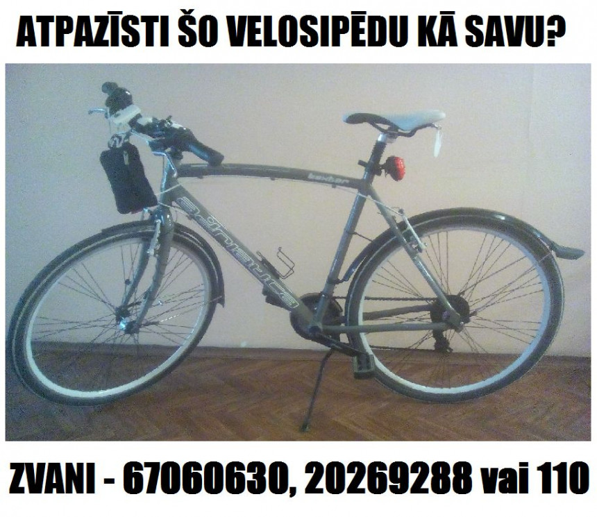 Policistu rīcībā esošā informācija liecina, ka tas varētu būt zagts. Valsts policija aicina atsaukties divriteņa īpašnieku, zvanot pa tālruņa numuru 67030660, 67060630, 20269288 vai 110.