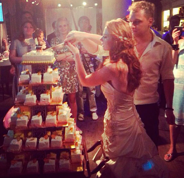 Bijusī meiteņu grupas «T.a.t.u» dalībniece, pazīstamā krievu dziedātāja Ļena Katina, kura pavisam nesen apprecējās ar slovēņu mūziķi Sašo Kuzmanoviču, jau parādījusi pielūdzējiem fotoattēlus no savām kāzām.