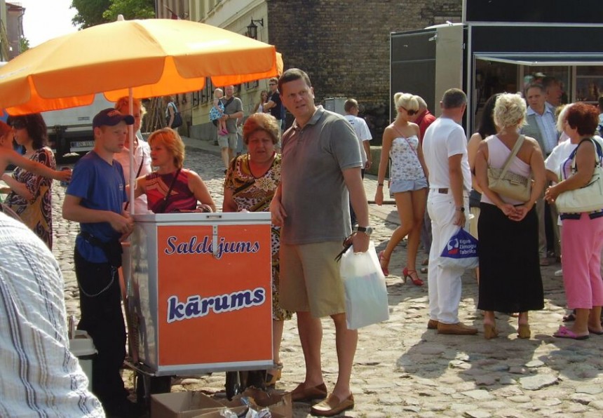 Cik varēja noprast, pārdevējs bija uzrēķinājis vienu saldējumu par daudz, par kuru Gerhards, kādreizējais ekonomikas ministrs, maksāt nevēlējās. Skaidrošanās ilga krietnu brīdi un noslēdzās ar to, ka visa kuplā saime ar pusēstiem saldējumiem tika aicināta pie saldējuma ratiņiem, lai veiktu pārskaitīšanu. Pierādījis savu taisnību, ministrs apmierināts devās tālāk baudīt svētkus. Jāpiebilst, ka Gerharda un viņa sievas Vitas ģimenē aug divi dēli – Krišjānis un Jēkabs.