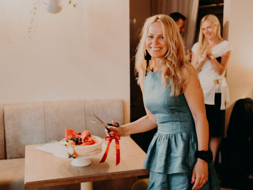 Liene Zemīte ar savu komandu, ar kuru ir kopā vairāk nekā piecus gadus, svinīgi atklājot savu jauno pilsētrestorānu «Lapsas māja».