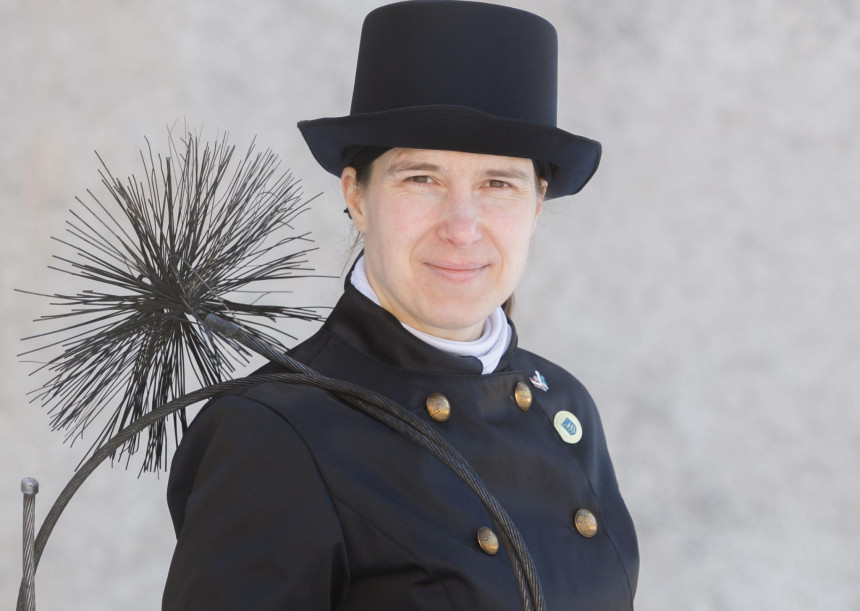 Kad skursteņslaucītāji lec uz skursteņa malas, tad jostas sprādze palīdz noturēties, lai nenoveltos. Tā vajadzīga arī, lai vēderu nesasistu uz kāda asa stūra. Līga Ondzule parāda, kā to dara. Nē, šoreiz ne uz skursteņa. Viņa ir vienīgā sieviete skursteņslaucītāja Latvijā. Pagaidām vienīgā.