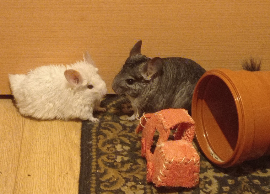 Kad Lote ieradās, sākumā tādas saskaņas nebija, un pagāja divas nedēļas, kad pamazām varēja likt abas vienā būrī. Baiba varēja pārliecināties, ka šķietamo vai reālo briesmu gadījumos šinšillas mēdz apslacināt savu ienaidnieku ar urīnu. Lote tā darīja, kamēr sarada ar Džeinu. Par laimi, Džeinas kažoks no slapjuma necieta. Lai saradinātu, Baiba iznesa abas koridorā (jo tur mazāka platība) un vēroja uzvedību, nolika Lotes būrī dažas Džeinas mantas, lai samainās ar smaržām un viena pie otras pierod.