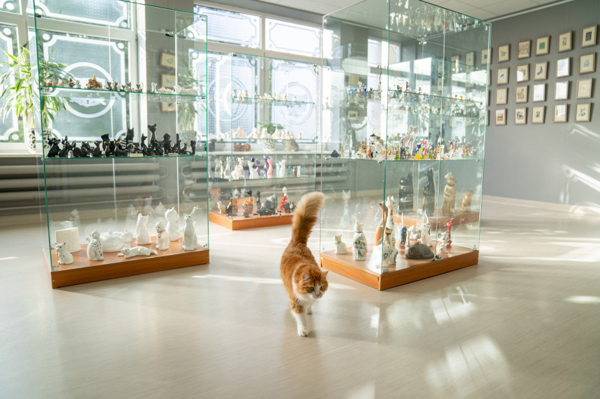 Te var pastāvēt pie maneki jeb Japānas laimes un naudas kaķa, ja gribas papildināt bankas kontu. Var pašķirstīt kaķu vārdu kalendāru. Var vienkārši priecāties par materiāliem, no kuriem izgatavotas kaķu figūriņas. Starp citu, muzejā ir vairāki tūkstoši dzejoļu par kaķiem. Visvērtīgākā ir pirmā, no Polijas atvestā kaķa figūriņa, bet visdārgākais - nē, tā nerēķinām, saka Asta Sipavičiene. Kaķu muzejs saņēmis dāvaniņas arī no Peļu muzeja un Suņu muzeja. Uzzinām, ka lietuviešu bērni smejas par vārdu «kaķis». Droši vien tā nesmietos, ja prastu izrunāt burtu «ķ»...