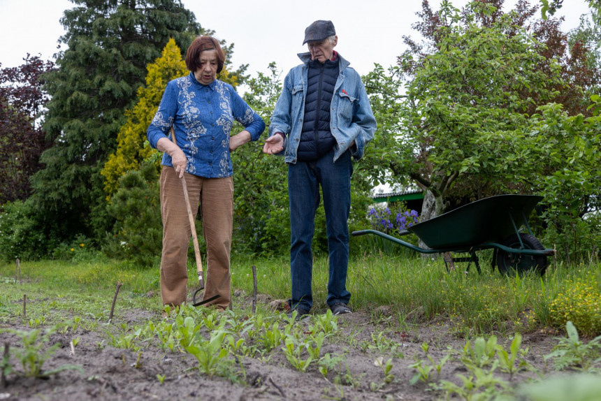 «Esam pensionāri, bet īsti nav laika pat savam mīļajam dārziņam. Tikai ieskrienam un aizskrienam! Laiks ir liels deficīts. Mēs atbraucam uz dārzu, apsēžamies, izdzeram pirmo kafijas krūzi. Tad ņemam rokās kapli - dibens gaisā un aiziet! Vakarā izdzeram tēju un skrienam uz autobusu. Dārzs nokopts un sakopts paliek. Šogad jau februārī lietavas un vēji apstājās un varēja smuki nogrābt visus gružus, ko parasti pavasarī nevar paspēt izdarīt. Tikai jūnija vidū pabeidzu pavasara sēju. Sēju un stādu to, kas manai ģimenei garšo: šabeļpupiņas, burkānus, sīpolus, bišķi kartupeļu. Kādreiz mums bija gandrīz viss, arī gurķi, bietes, kāposti, kurus mīl arī stirnas un zaķi. Dzīvnieki ēd arī rozes, ābeļzarus, bet pērn iestādīju bietes. Vai mēs kādu redzējām? Tik skaista, gracioza stirna pastaigājās pa dārzu. Burvīga! Bet es tomēr nolēmu, ka viņu nebarošu,» pasmej dārza saimniece un pastāsta bēdu, ka šogad visas skaistās lilijas ir apēdušas «draudzenes» žurkas.