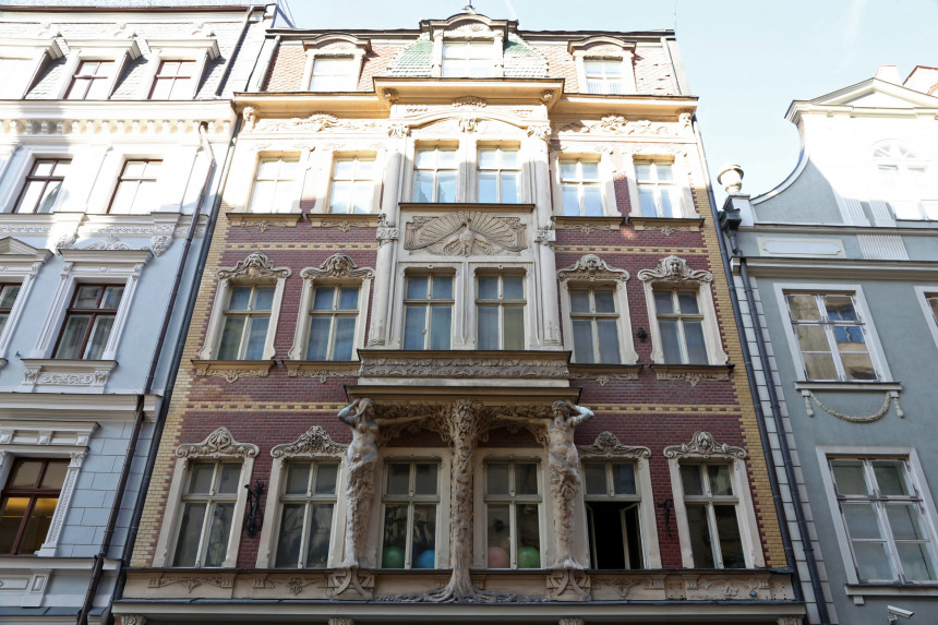 Viena no ēkām, kuru ar labpatiku apskata gan rīdzinieki, gan pilsētas viesi, atrodas Smilšu ielā 2. Tās arhitekts ir slavenais Konstantīns Pēkšēns, viņa projektētais nams septiņus gadus pēc uzcelšanas gan ticis pārbūvēts jau 1909. gadā. Šo ēku dēvē par vienu no Rīgas jūgendstila arhitektūras labākajiem paraugiem, tajā ir saskatāmi jūgendstila simboli - pāvs simbolizē skaistumu un pašapziņu, bet spārnota sievietes galva ir saules simbols. Fasādē var ieraudzīt arī ar brīvmūrniecību saistītus simbolus, piemēram, cirkuli.