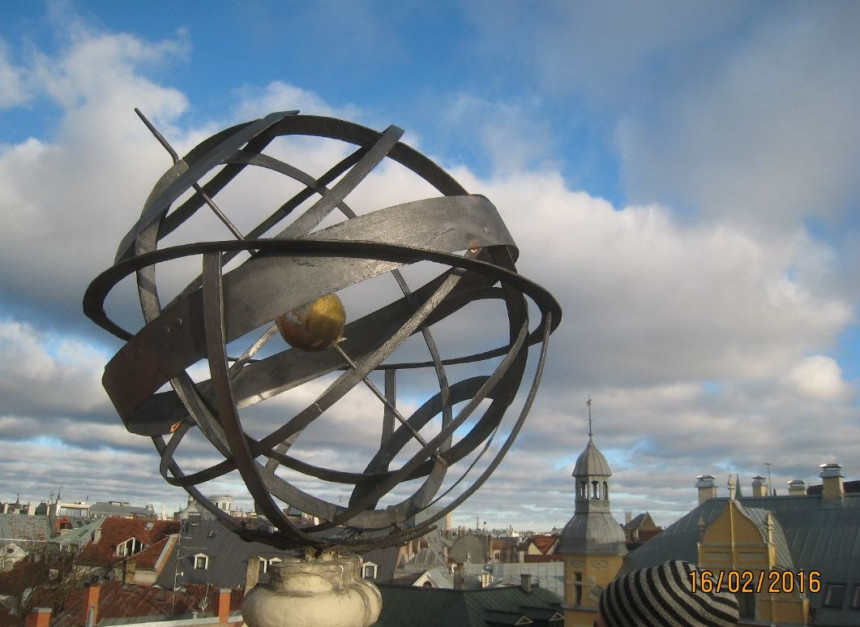 Kur var apskatīt astrolabiju? Rīgā, uz Rīgas vēstures un kuģniecības muzeja ēkas zelmiņa jeb jumtgales.