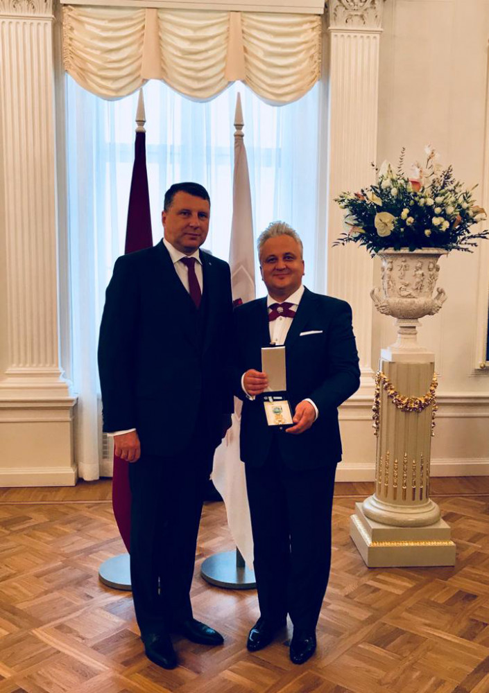Pēc atgriešanās Rīgā pavisam drīz bija jādodas uz Rīgas pili saņemt ordeni. «Tā kā pirms ceremonijas ieteica gari nerunāt, tad visa mana runa sastāvēja no četriem vārdiem: «Es no sirds pateicos!» Kad mūs ar prezidentu fotografēja, augsto apbalvojumu turējām katrs no savas puses. Man mazliet nodrebēja roka. Prezidents viegli pieliecās un man pie auss pačukstēja: «Neuztraucies!» Tajā brīdī sanāca smiekli!»