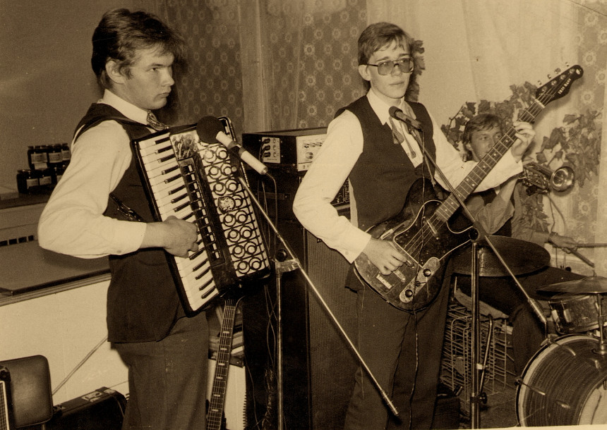 «Rēzeknes Jāņa Ivanova vārdā nosauktās mūzikas vidusskolas audzēkņiem bija aizliegts spēlēt, piemēram, kāzās. Tāpat skolas vadība bija aizliegusi spēlēt citu mūziku - tādu, kas nav akadēmiska. Taču, protams, mums gribējās spēlēt gan basģitāru, gan citādāku mūziku un, protams, arī kaut ko nopelnīt. Skatoties šo fotogrāfiju, man šķiet, ka tobrīd atrodamies un muzicējam kādā kolhoza ēdnīcā, taču neatceros, kam bija kāzas, kurās spēlējām. Jo toreiz tika spēlēts daudz kāzu, un dzīvē diezgan bieži ir gadījies piedzīvot situācijas, kad pienāk klāt kāds cilvēks un saka - paldies par to, ka spēlējāt manu vecāku kāzās… Tādu spēlēšanu kāzās ir bijis ap četriem simtiem, tāpēc kāzās vairs nespēlēju.»