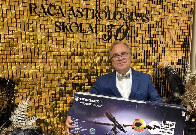 «Vienmēr esmu gribējis naktīs lūkoties zvaigžņotajās debesīs. Nu man ir pavisam «oficiāls iemesls» naktīs nebūt mājās,» saņemot dāvanā pavisam īstu teleskopu, smaidot saka pazīstamas astrologs Andris Račs.