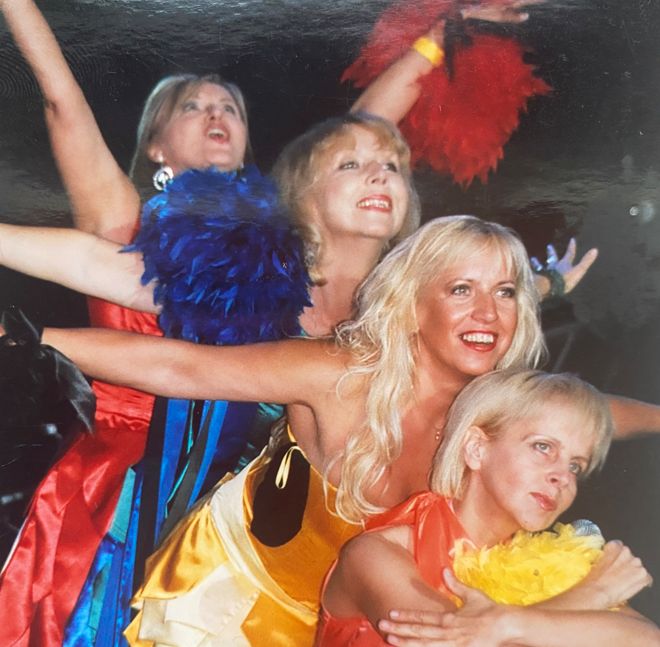 Otra Olgas izvēlētā bilde ir no viņas daiļrades posma, kas saistās ar «Dāmu popu» un kurā bija apvienojušās dziedātājas Ieva Akuratere, Maija Lūsēna, Edīte Baušķeniece un viņa pati. «Šī fotogrāfija varētu būt tapusi ap 2005. gadu Valmieras pilsētas svētkos, kad piedalījāmies koncerttūrē «Zelta graudi». Speciāli tai māksliniece Elita Patmalniece mums uzšuva šos ļoti krāšņos tērpus, turklāt viņa bija izdomājusi, ka katrai no mums varētu būt kleita savā krāsā. Bijām ļoti atraktīvas meitenes, un dziedāšanu papildināja arī kustības un dejas. Man šī šķiet ļoti emocionāla un dinamiska bilde, un laikam es pat zinu, kas tā ir par dziesmu - «Ūdens, zeme, gaiss». Es biju uguns, Ieva - zeme, Edīte bija gaiss, un Maija - ūdens. Tolaik mēs visas bijām dāmas labākajos gados un tādas esam joprojām!» Olga arī atminas, ka tieši tolaik bija iznācis «Dāmu popa» albums «Par rozēm», un divus gadus dāmas aktīvi koncertējušas, dažkārt nedēļas nogalēs nodziedot vismaz trīs četrus koncertus.