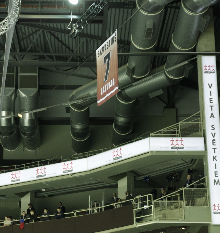 Mīklains notikums notika piektdienas spēlē. Pirmā perioda sākumā pie «Arēnas Rīga» griestiem karājās karogi ar leģendāro spēlētāju Helmuta Baldera un Kārļa Skrastiņa kreklu numuriem, bet jau otrajā periodā goda vietā gozējās tikai Skrastiņa numurs. Nekāda zemteksta tam gan neesot. Kā vēlāk noskaidrojās, karogs nav bijis labi piestiprināts un vienkārši nokritis.
