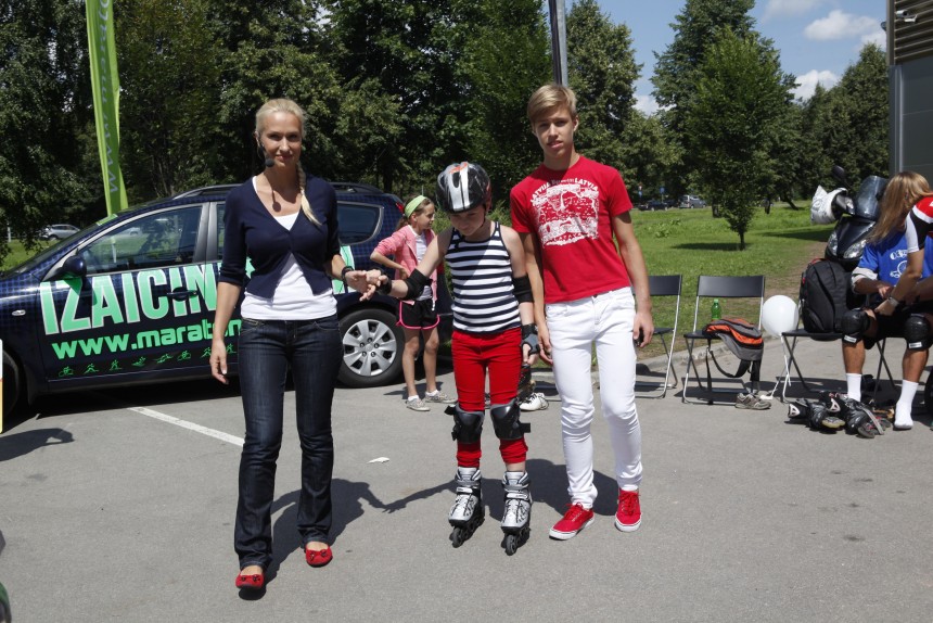 Skrituļošanas ziņā pārliecinošākā izskatījās Zane Vaļicka-Pētersone, kura šoreiz slidot devās kopā ar astoņus gadus veco meitu Ievu.