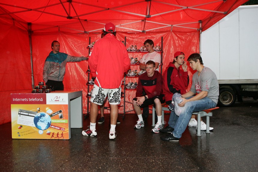 Saulainajā nedēļā 19. augusts iegadījās vienīgā diena, kad lietus kā ar spaiņiem gāza no rīta līdz pat vakaram, iepriecinot sēņotājus, bet apbēdinot "Nike Riga Run" organizētājus. Tomēr pat šādā laikā uz treniņu ieradās ap desmit cilvēku, tostarp arī hokejisti. Gatavību skriet paskarbajos laika apstākļos gan izrādīja tikai Gints Meija, kamēr Lauris Dārziņš un Kristaps Sotnieks pret to izturējās rezervēti. Dārziņš atzina, ka skriešana viņam pēdējā laikā vispār nepadodas, un izteica versiju, ka uz pasākumu atsūtīti komandas labākie un sliktākie skrējēji. Sēdēdami sarkanajā teltī, hokejisti noplēsa pa izmirkušam jokam. "Iespers vēl zibens," noburkšķēja Sotnieks. Uz to tūlīt reaģēja "Dinamo" trenera asistents Artis Ābols, sakot, ka Sotniekam jau nav govs ķēde ap kaklu, atsaucot atmiņā neseno gadījumu, kad zibens trāpīja kāda vīrieša zelta ķēdē. Kompromisa variantā hokejisti tomēr nedaudz paskrēja – līdz reklāmstendam, lai lietū nofotografētos.